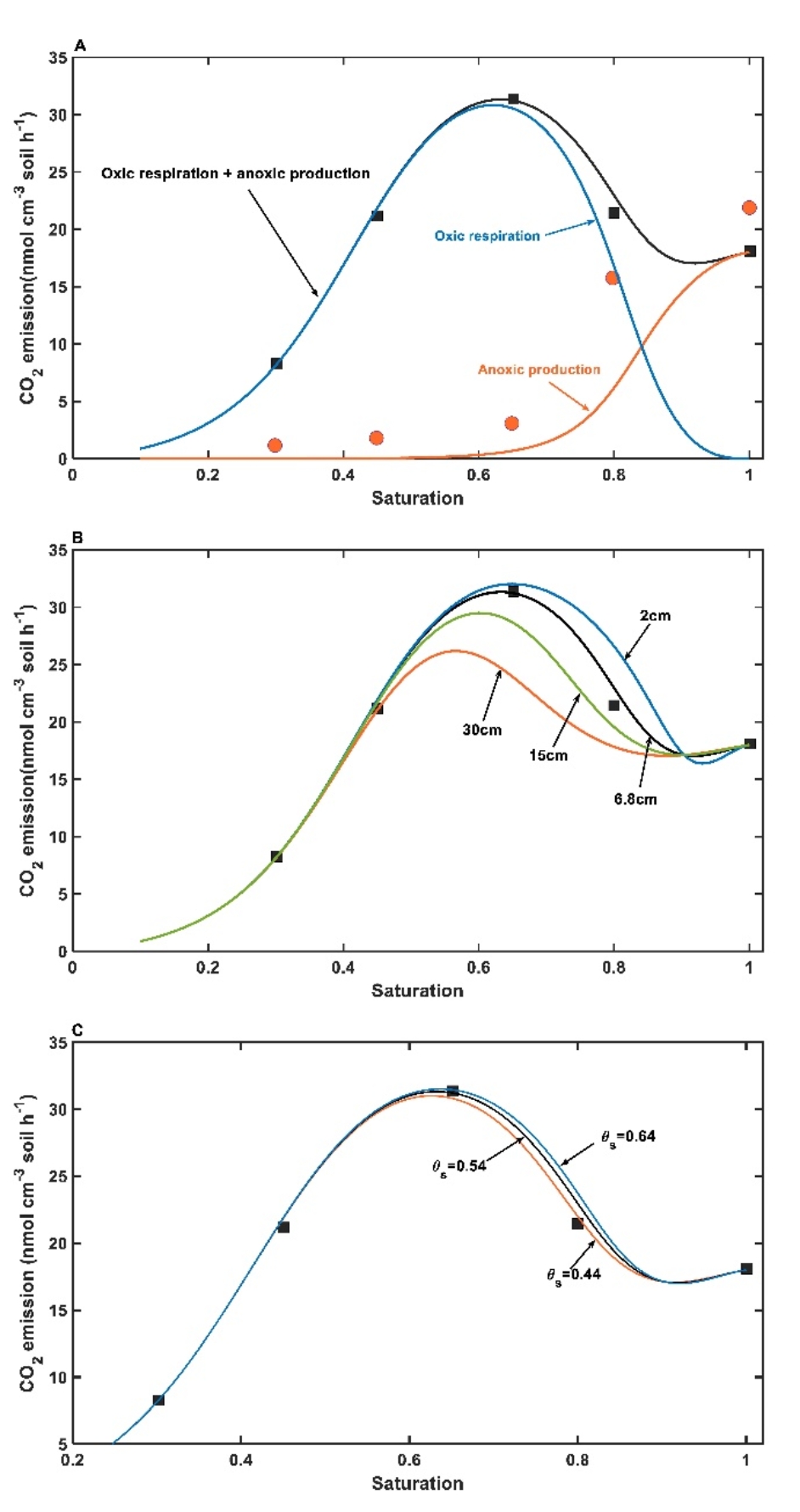 为突破传统模型局限,研究团队摒弃基于简单经验公式的路径,构建出量化土壤孔隙中氧气扩散与消耗过程并考虑微生物非均匀分布的土壤呼吸微观模型,然后通过空间尺度转换方法,将微观机制外推到宏观土壤剖面尺度,从而能模拟温度和水分变化对土壤剖面碳排放的影响。通过与已报道的实验室培养试验和田间试验数据对比,团队不仅验证了模型的准确性,并利用模型计算了培养试验数据在设定的温湿度条件下人为改变土壤填装深度、孔隙度和养分可利用性等导致的结果偏差,进而量化了因土壤物理环境失真所导致的误差方向。该成果为研发下一代土壤碳循环预测模型提供了关键机制框架与实证依据。