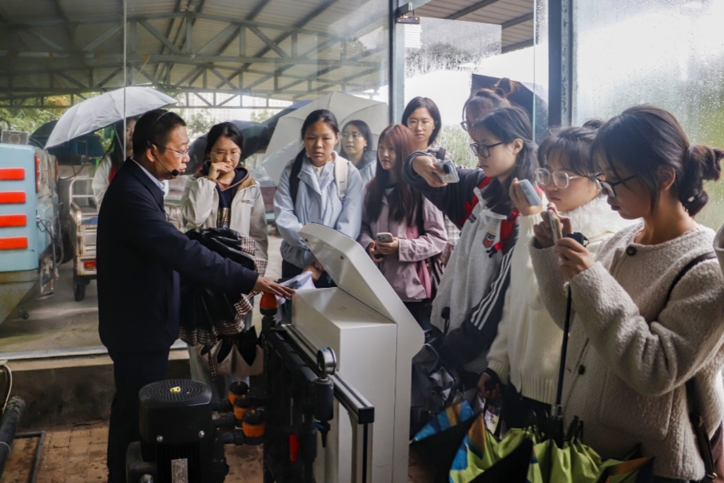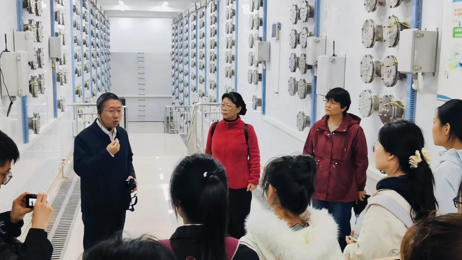 研修期间,灌溉所刘战东研究员带领师生参观科研设施与成果展示区,系统讲解农田灌溉知识、各类灌溉技术应用场景及节水灌溉装备功能特点,帮助学生深化对植物生理学水分代谢与农田灌溉实践的认知;在智慧灌溉展示园,结合季节与作物特性,介绍微喷带灌溉、固定式喷灌、地埋伸缩式喷灌等技术,说明各技术适用条件与节水效果,推动理论知识与实际应用对接;在中国农科院新乡基地,带领来访师生观察农作物生长状况,讲解节水灌溉系统工作原理和智慧灌溉调控技术。